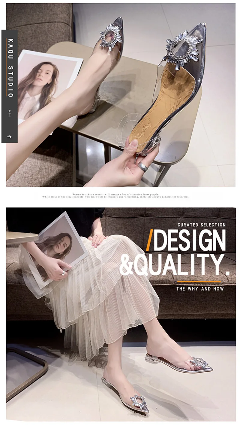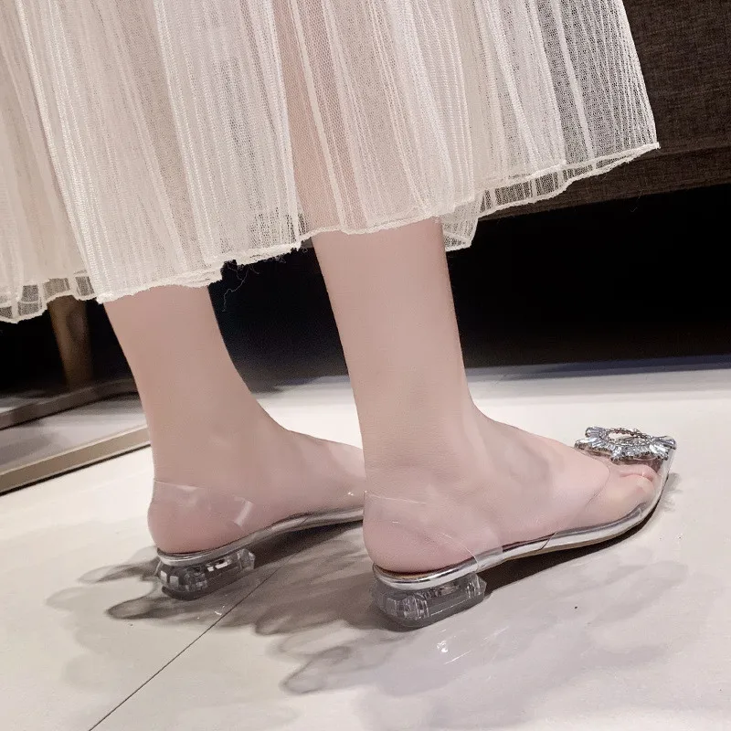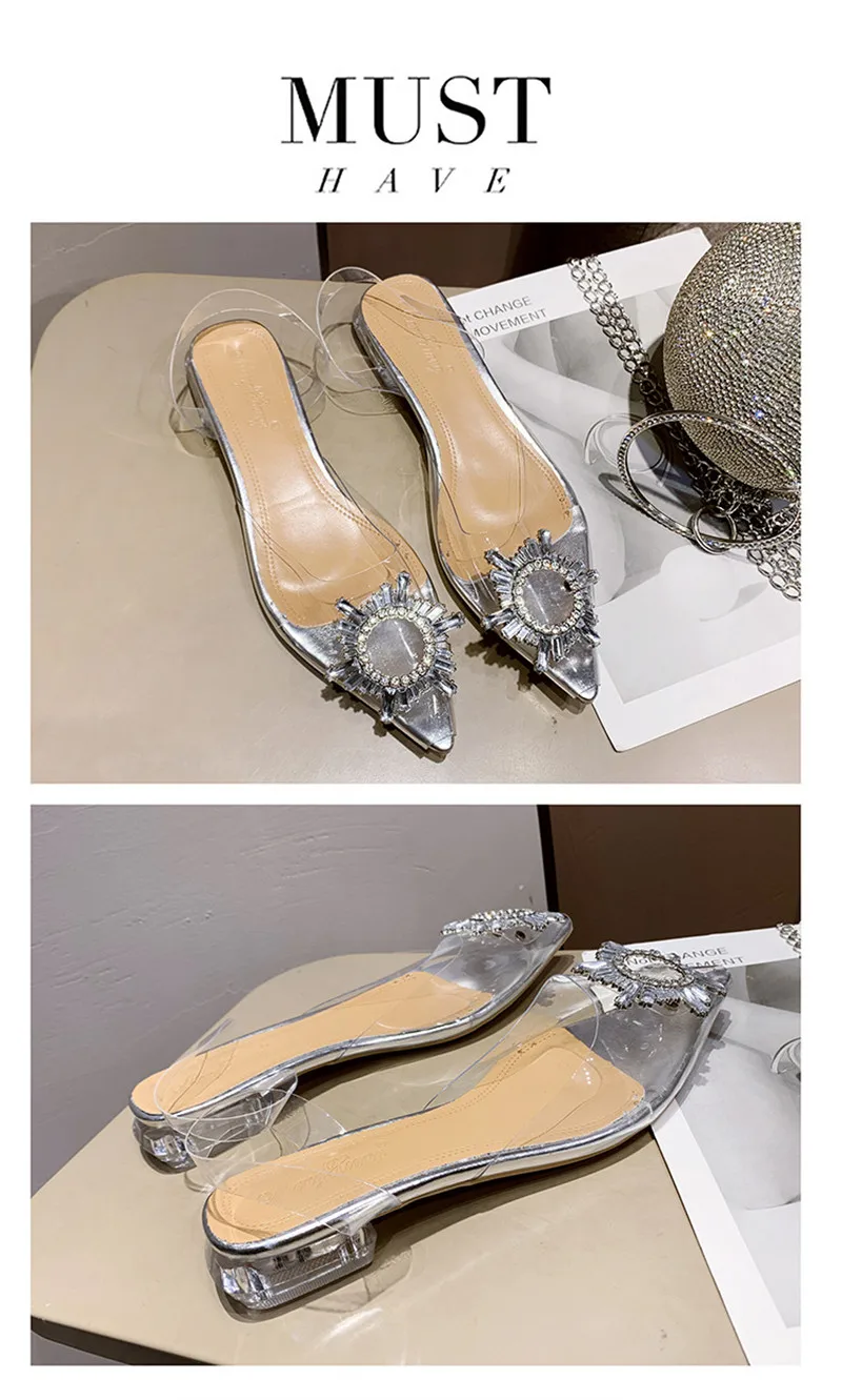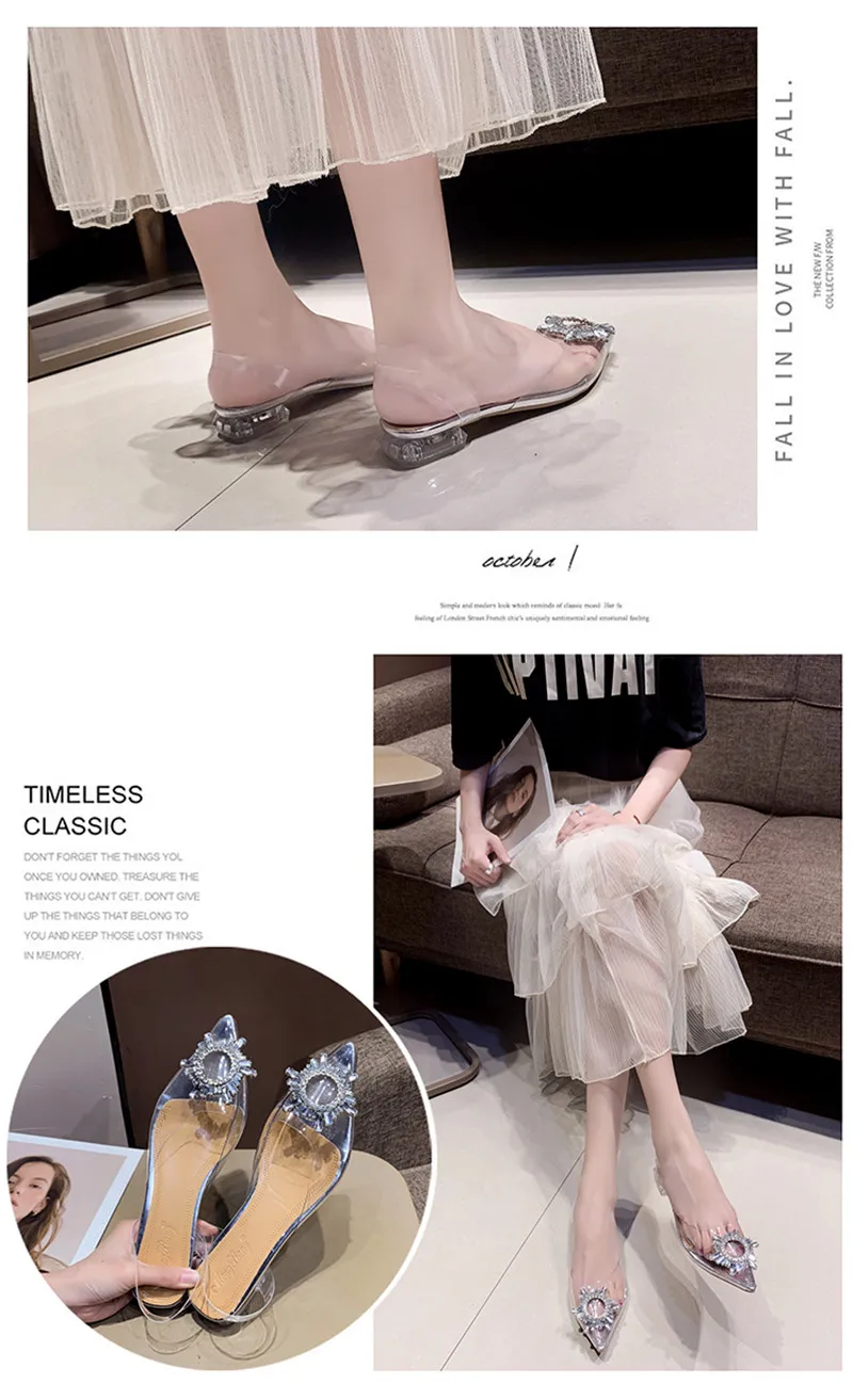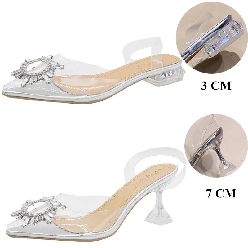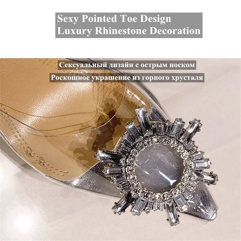 New Summer Women Pumps High Heels Bling Crystal Shoes Sexy Pointed Toe Ladies Party Dress Shoes Transparent Slippers