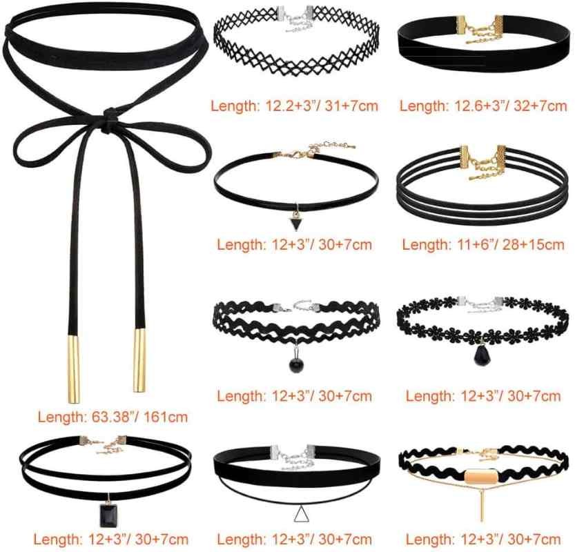 Quantity : The choker set comes with 10 different chokers including classic, velvet, pendant, gothic tattoo, lace, vintage Lolita styles to suit different outfits