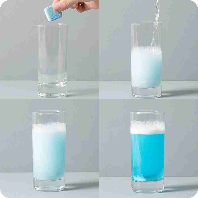 -Unique of formula targets and removes stubborn buildup. Effervescent tablets design, easy to use