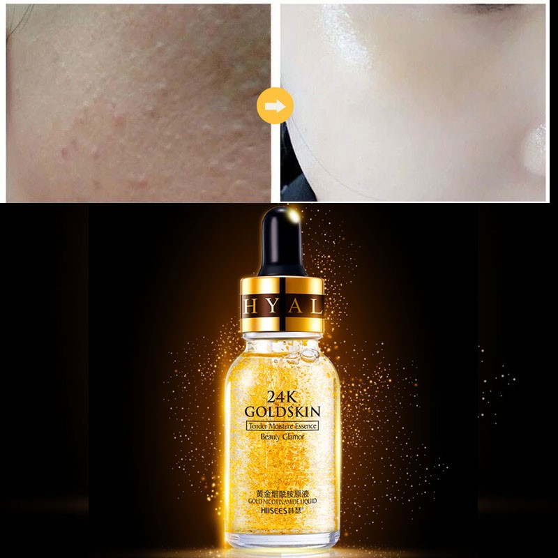 24k gold essence can promote metabolism, brighten skin and delay senility by smoothing wrinkles, which can also offer moisturizing essence to hydrate your skin for its stickiness, creating excellent makeup effect.