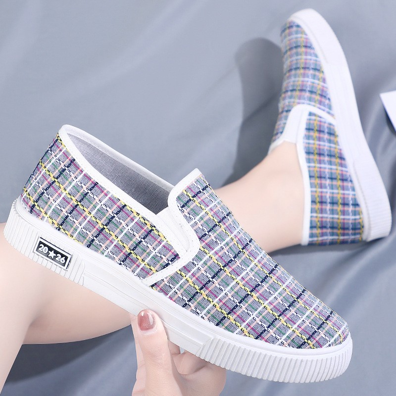 breathable coordinating canvas shoes women's versatile grid shoes Parker round sports Canvas