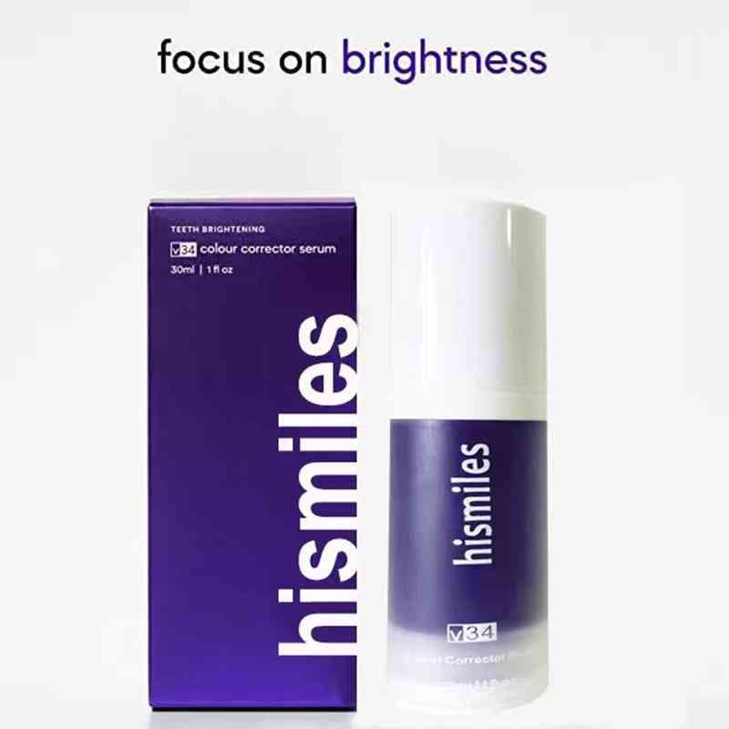 3.Hismile V34 is designed for people who want to brighten their teeth even more after teeth whitening or who already have a very white tooth shade and do not require a full treatment from a teeth whitening kit. Oxidizing teeth stains with PAP+ increases lightness and reduces saturation of yellow stains, while V34 brings out the warm and cool tones (hue) in your teeth to a more vibrant white tone.
