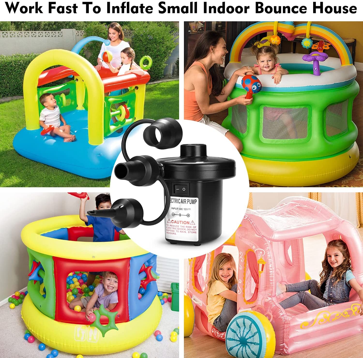2 In 1 Air Compressor Pump Quick-Fill Air Filling Inflator 220V with Nozzles Lightweight Multipurpose for Mattress Swimming PoolFeature:1. Strong power: This electric air pump has the advantages of strong power, high pressure, large flow, quick charging and pumping, and easy operation.2. Scope of application: inflatable mattress, floating bed, inflatable boat, sofa, swimming circle, baby seat, pool, inflatable tent, etc3. Compact & Light Weight Design: This electric pump is easy to pick up and handle as it is light weight. This electric air pump for inflatables can be used indoors and outdoors. This air pump is easy to use, store, carry and transport due to its compact size.4.Easy to Use:The inflatable air pump comes with a 220V AC power adapter, To inflatable, just put the inflatable head at the filling hold, then press the switch. To deflate, you should put the inflatable head in the vent hole, then press the switch to deflate.5. Satisfaction Guarantee: We strive to provide each customer with the highest standard of customer service to ensure you have a pleasant shopping experience. If you have any issues, inquiries or need assistance, please feel free to contact us directly.Specification:Origin: Mainland China