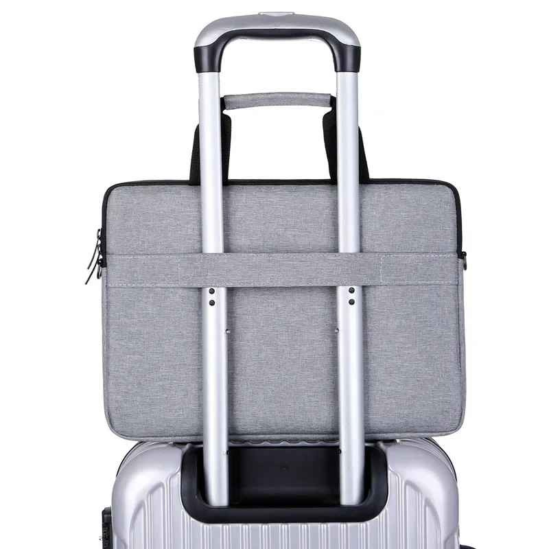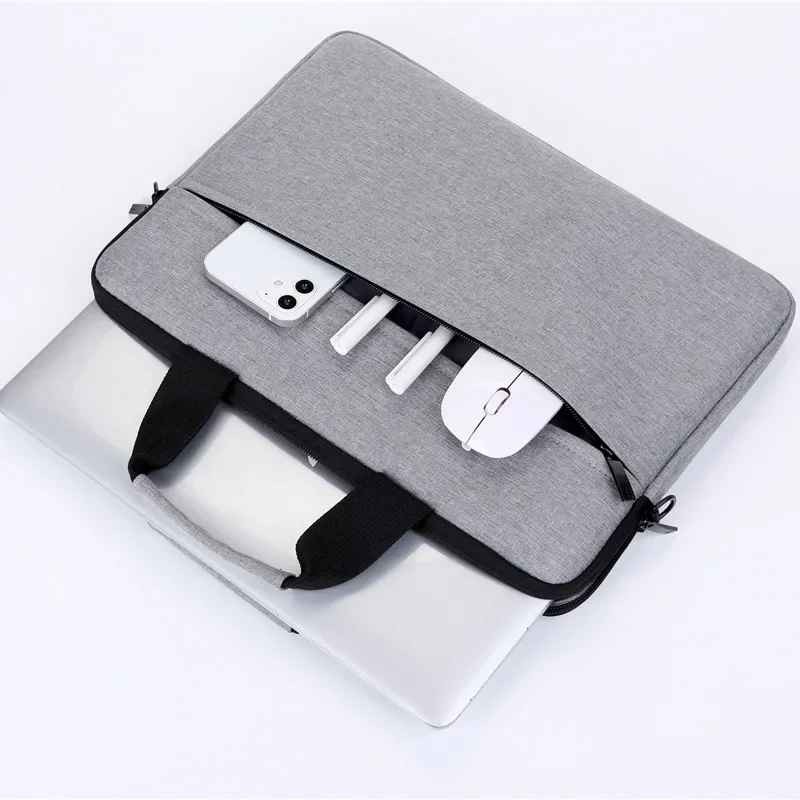High-quality polyester fabric outside and soft velvet inside. Multiple materials provide multi-layer protection from dust, water, scratches or shocks. Ultra-thin lightweight design, which makes it very suitable for daily use and travel wherever you go. The smooth top-loading zipper on the bag glides smoothly, providing easy and convenient access to your laptop. Made of durable and waterproof material. Never worry about spilling a drink or walking in the rain when your laptop is in this bag. Specifications: Material: Polyester fabric, velvet Features: Waterproof, dustproof, wear-resistant Applicable gender: Men and Women Hardness: Soft Open: Zipper Size: 13.3 inch, 14 inch, 15.6 inch Color: Black, Gray, Navy Blue, Pink, Purple Compatible: Laptop, Tablet PC, USB data cable, Mouse, USB Flash Drive, etc. Bag outer and inner size as following: 13.3 inch(Fit 13-13.3 inch laptop): 34*26*3cm 14 inch(Fit 14-14.1 inch laptop): 39*28*3cm 15.6 inch(Fit 15-15.6 inch laptop): 41*30*3cm Package includes: 1* Laptop bag