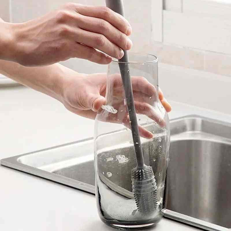 The silicon bottle brush will make sure keep your favorite vase, glass water bottle, pitcher, blender and glassware no scratches on their surface.