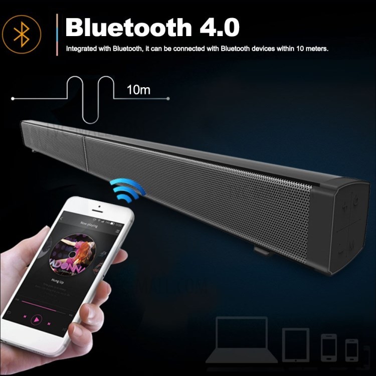 LP-09 upgraded version is a powerful speaker which delivers a round, high-end audio experience. audio experience. Multiple wireless and wired connections: easily connect to the sound bar via BT 5.0 or standard audio cable connection, RCA, and optical input.