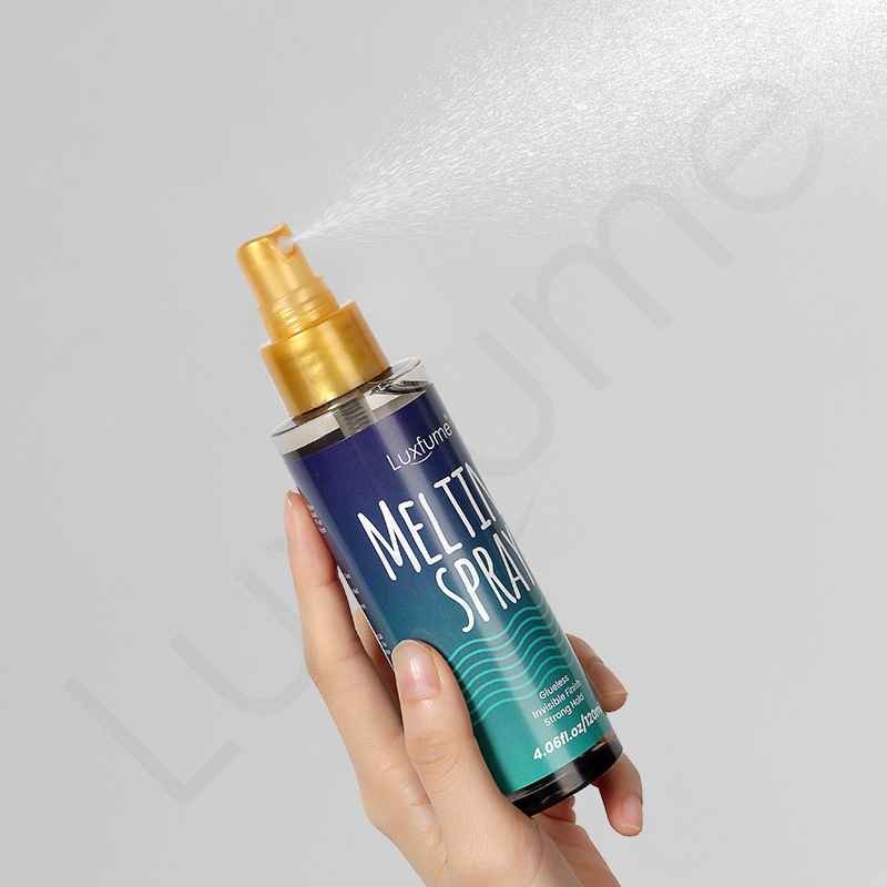 3. The texture of the spray is moist and the sprayed mist is very fine, so it can dry quickly and save you time. The lace will adhere to your skin smoothly even in contact with sweat, facial oil or water, and will not be waterproof and oil-resistant.