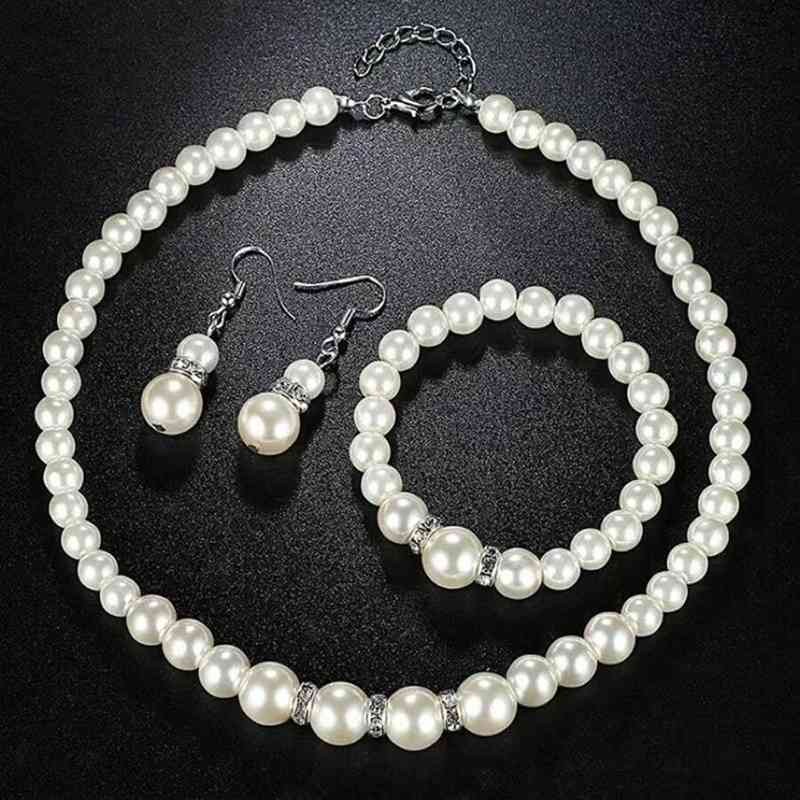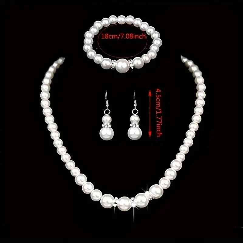 Pearl Jewelry Set Simulated Pearl Double Layer Luxury Earrings Necklace Everyday Bracelet Set