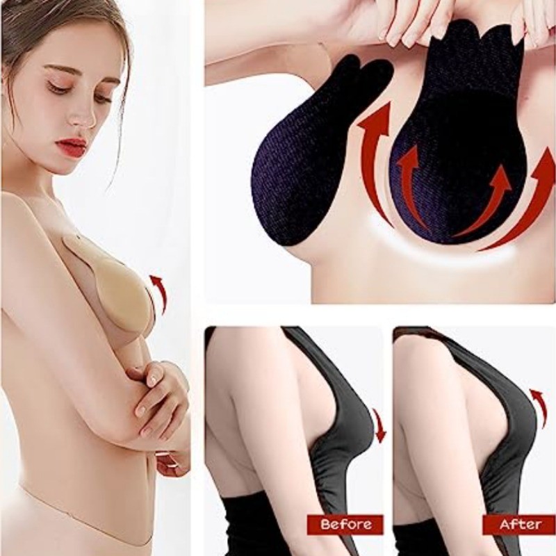 Self Adhesive Silicone Push Up Bra for Women, Invisible Strapless Chest Pads, Reusable Sticky Tape, Gym Bra