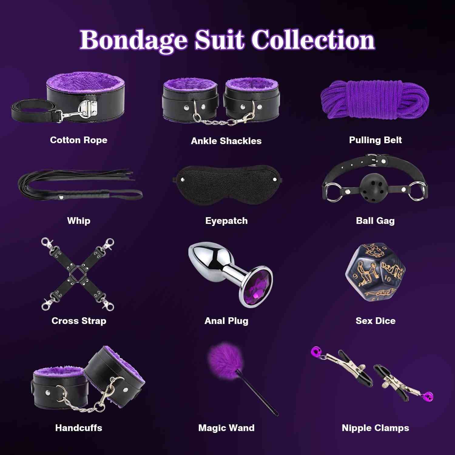 Sex Bondage BDSM Kit Restraints - Upgrade 12PCS Sets with Adjustable Handcuffs