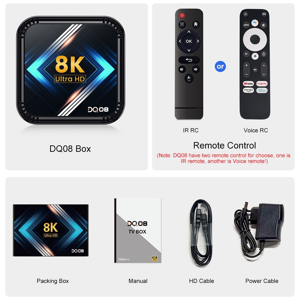 • Dual Wifi BT Google Voice 4G 64G: Stay in touch with the dual WiFi and BT Google Voice function of the DQ08 RK3528 smart TV box.