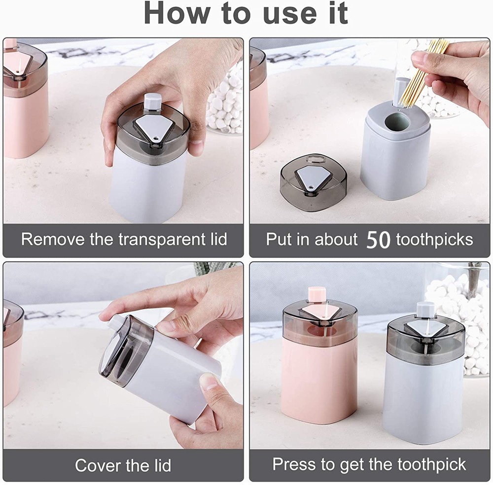 Package includes: 3 (gray, blue, pink) Toothpick holder dispensers