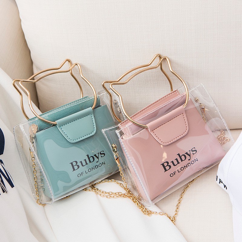 Transparent Jelly Bag Women's Cute Cat Handle One Shoulder Crossbody Women's Bag