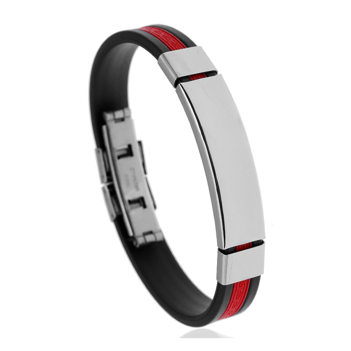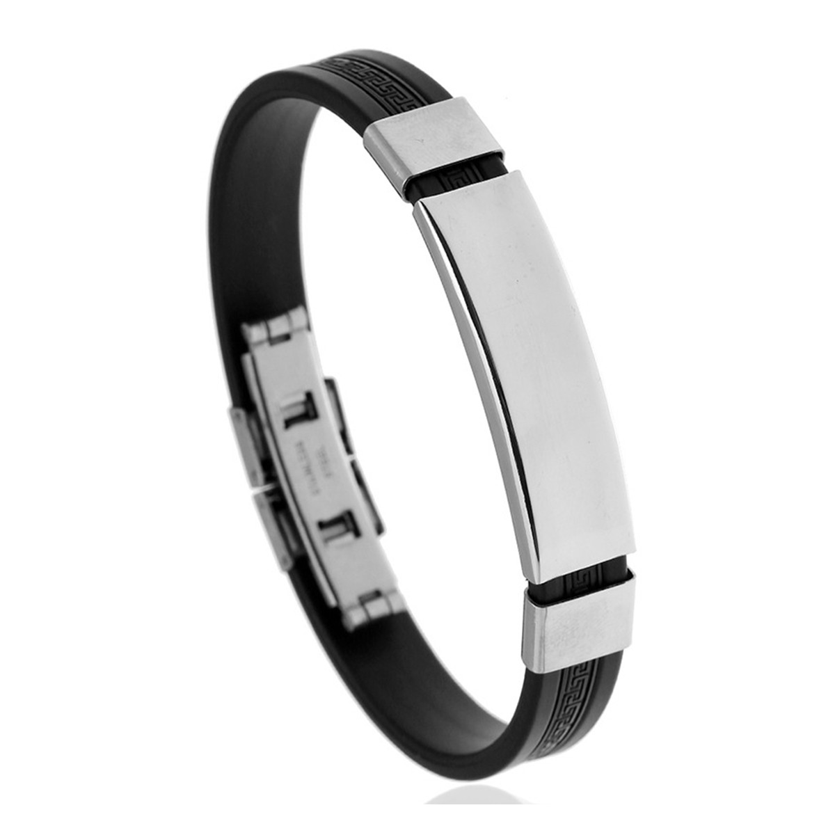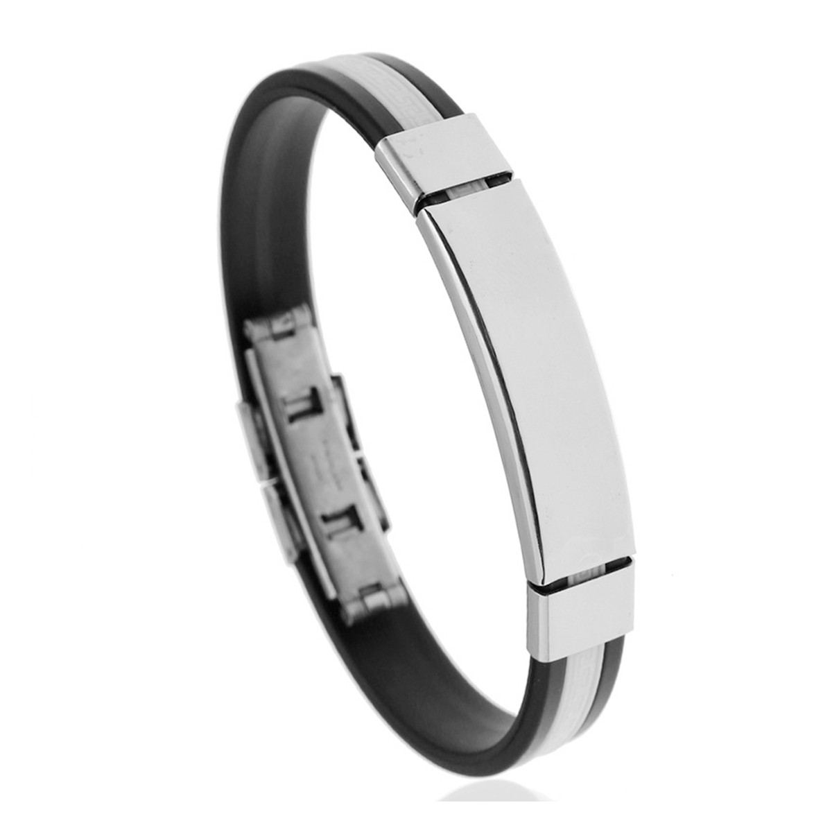 Unisex Silicone Bracelet Stainless Steel Bracelet On Hand For Couple Wrist Chain