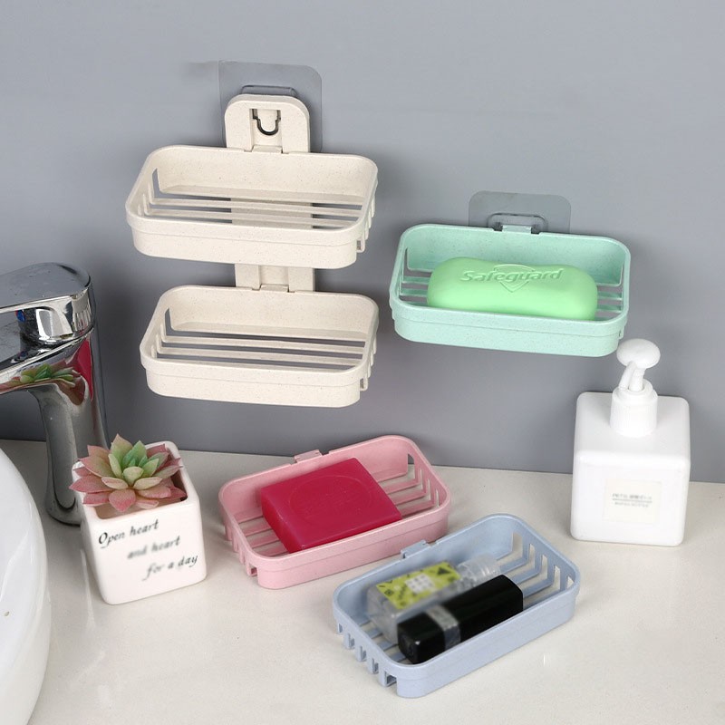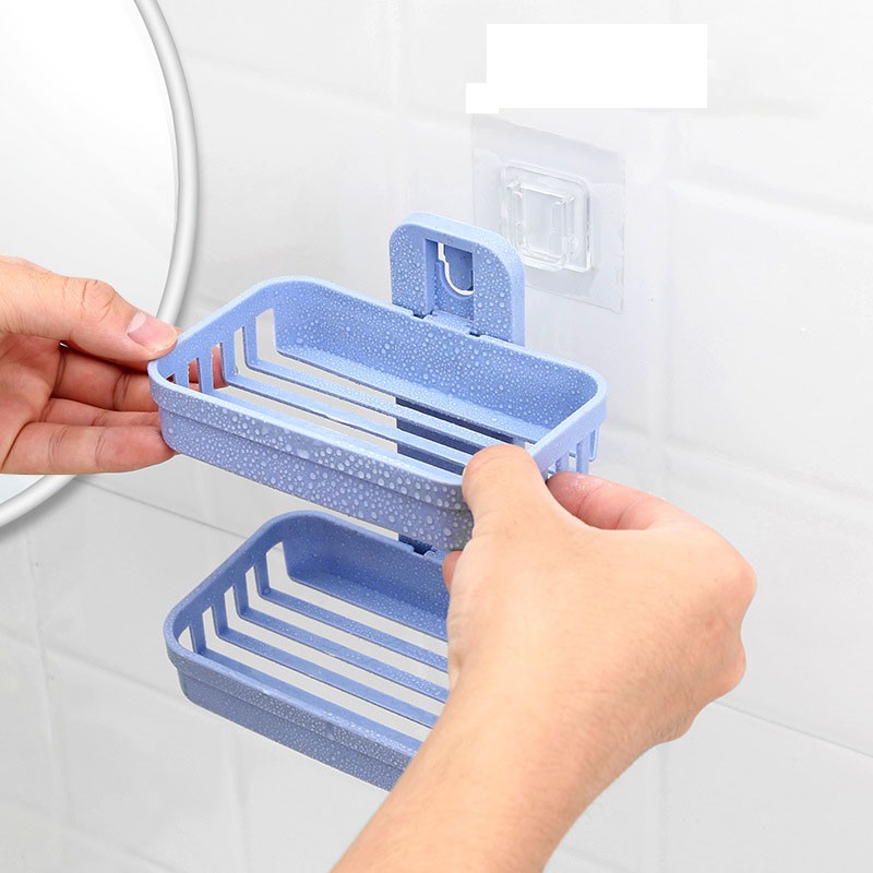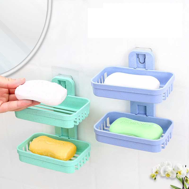 Wall Mounted Double Layer Soap Dish Punch-Free Drawer Draining Holder Kitchen Sponge Storage Box Bathroom Organizer Rack Shelves