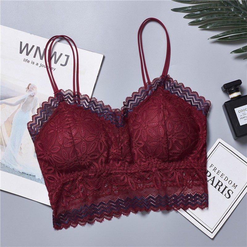 Women Lace Bras Top Bralette Solid Color Sexy Underwear Vest Female Hollow Out Wireless Seamless Bra