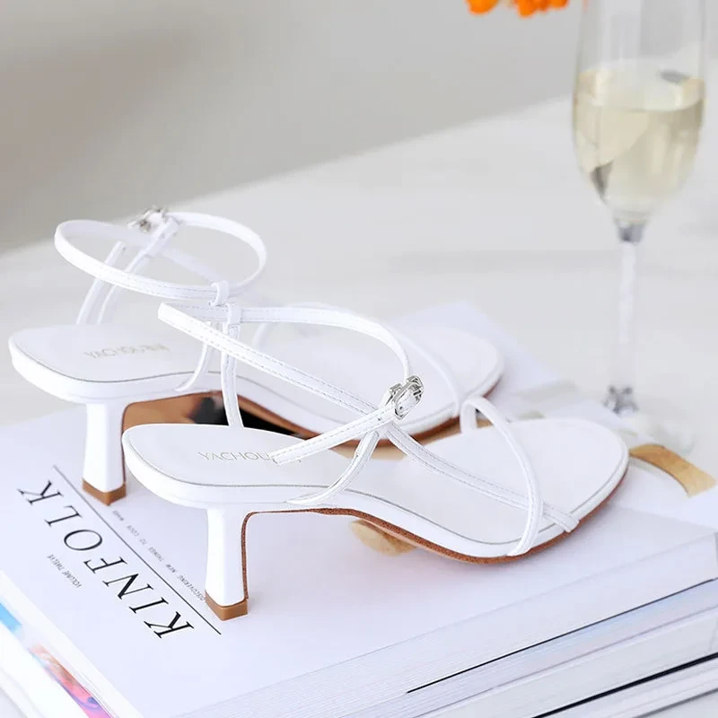 Women Sandals High Low Heels white Black Comfortable Stiletto Shoes
