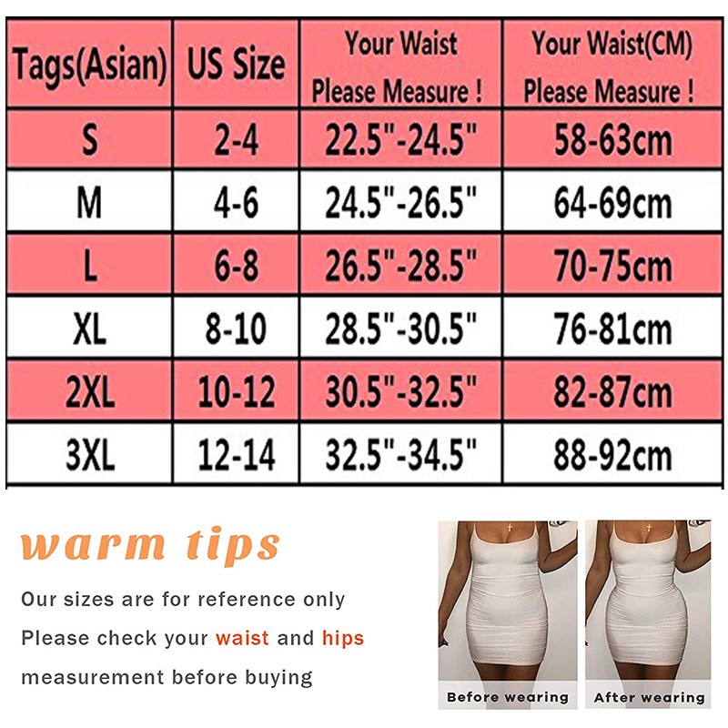 2XLWaist:82cm-88cm(32.28inch-34.64inch) Hip:100cm-106cm(39.37inch-41.73inch) Tile:41cm(16.14inch) Recommended Weight:65kg-73kg