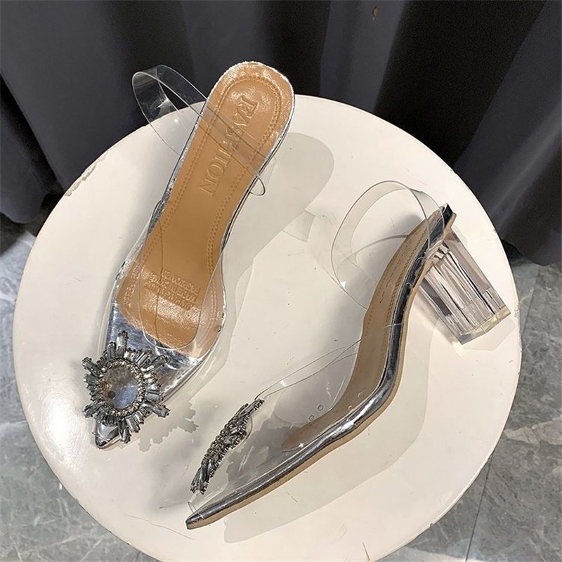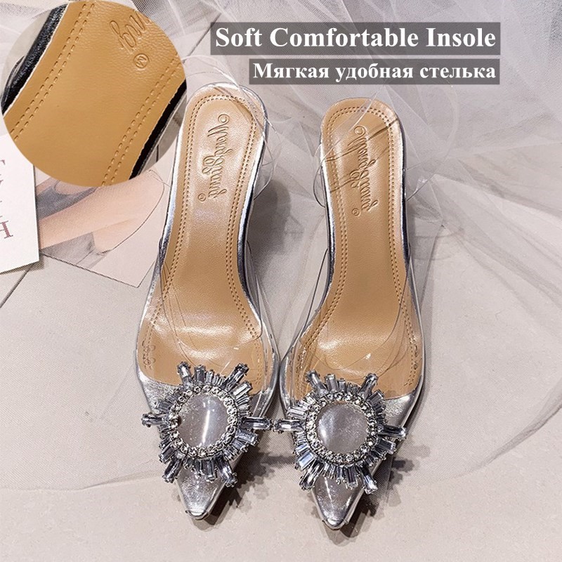 New Summer Women Pumps High Heels Bling Crystal Shoes Sexy Pointed Toe Ladies Party Dress Shoes Transparent Slippers