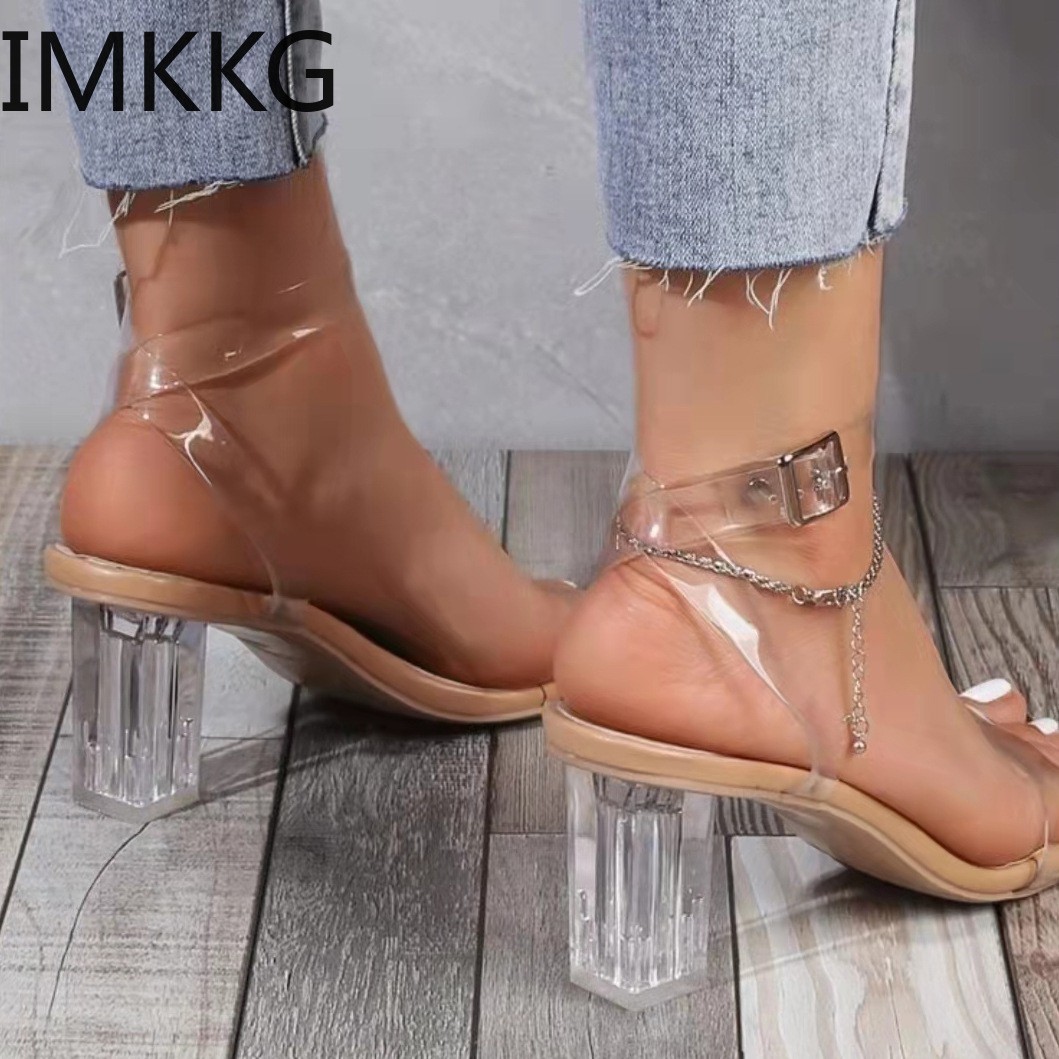 Women's Sandals Transparent Pvc Sandals Nude Elegant Clear Heel Wedding Dress Shoes 7CM