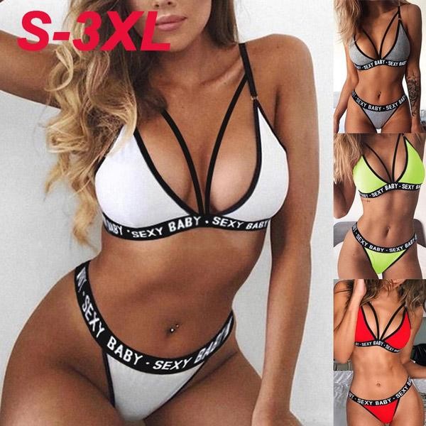 Women's Sexy Lingerie Set Letter Erotic Bikini Plus Size Push Up Bra and Thong Sexy Bra Set Micro Bikini Lingerie